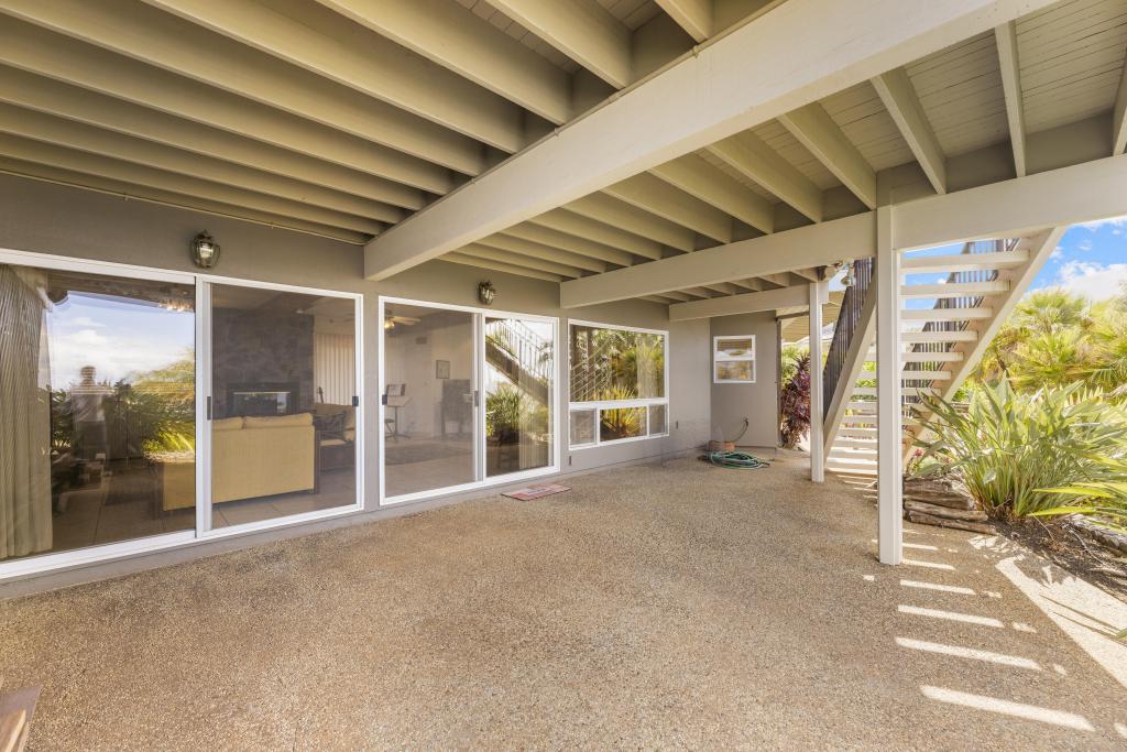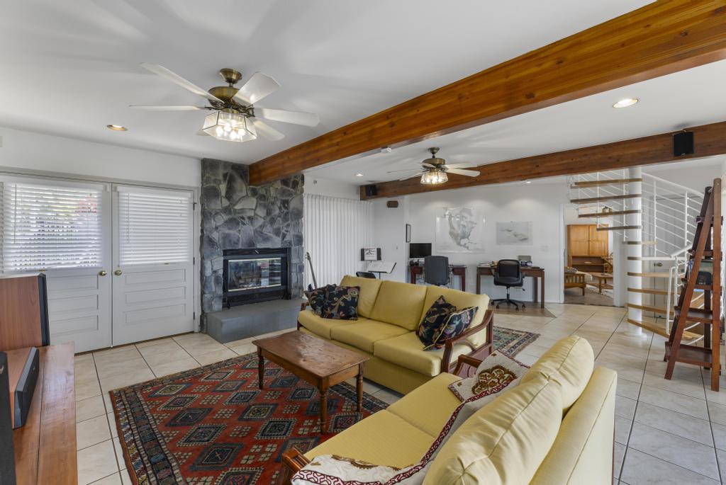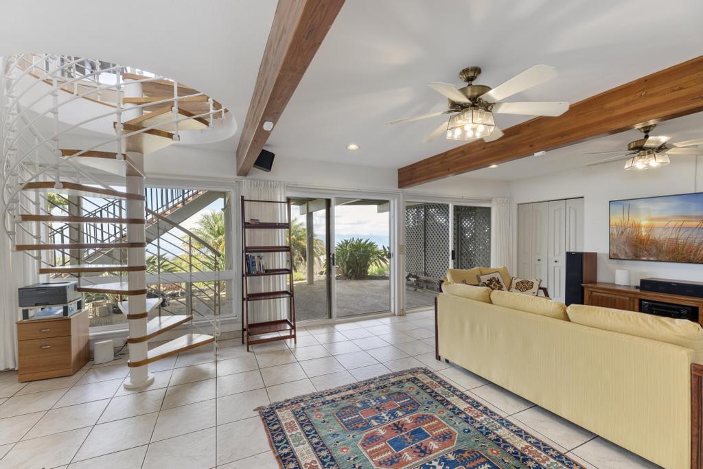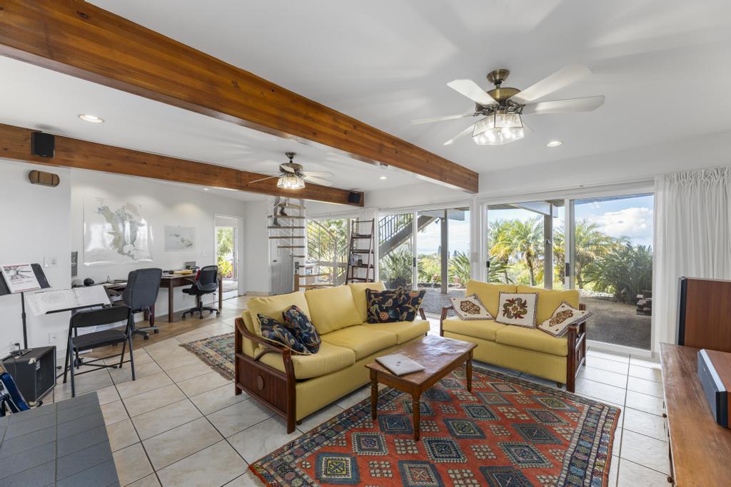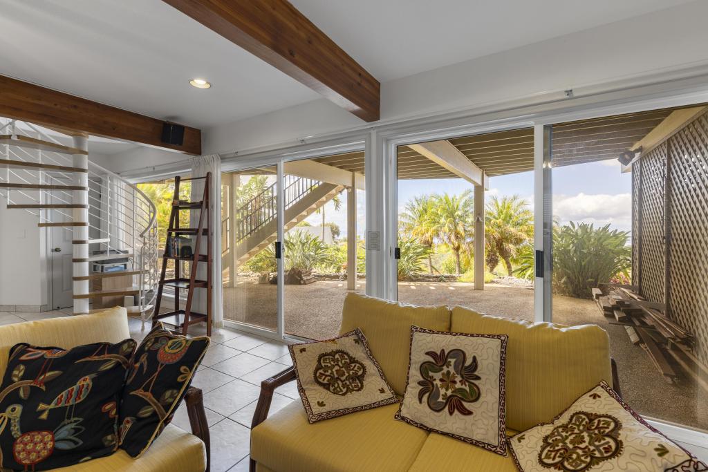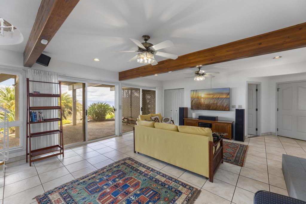 The lower level features ocean views: a substantially sized family room with fireplace; office area; supplementary laundry/full bathroom/mudroom; a 1-bedroom ohana with its own relaxing lanai.