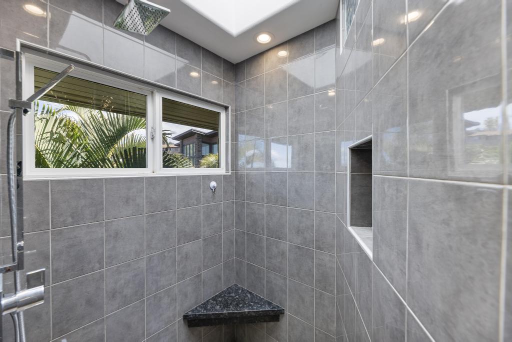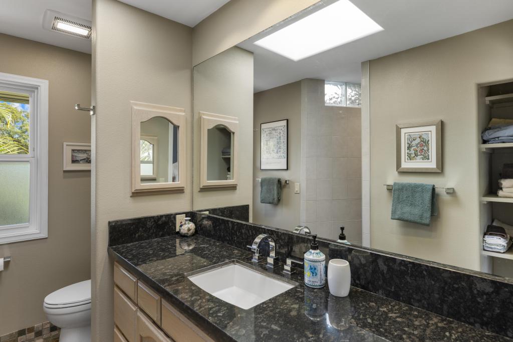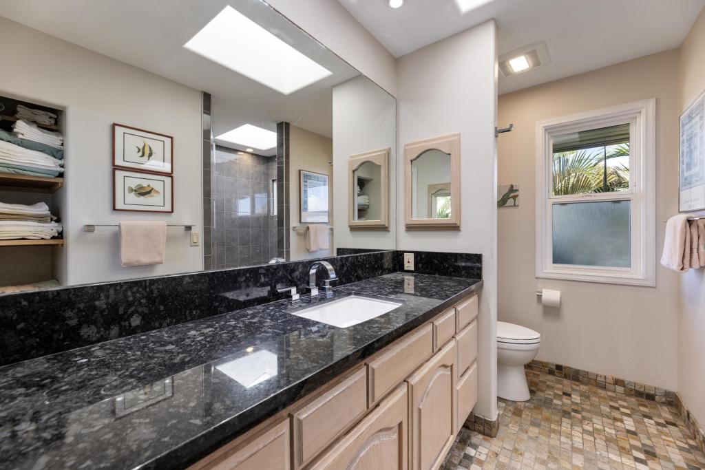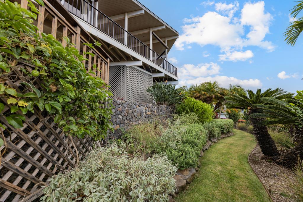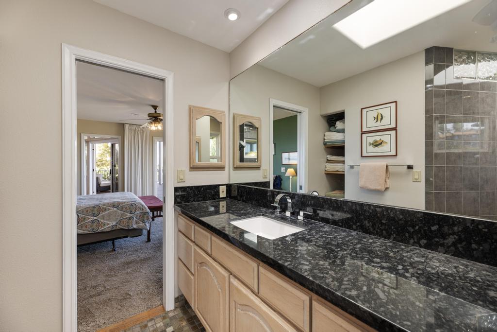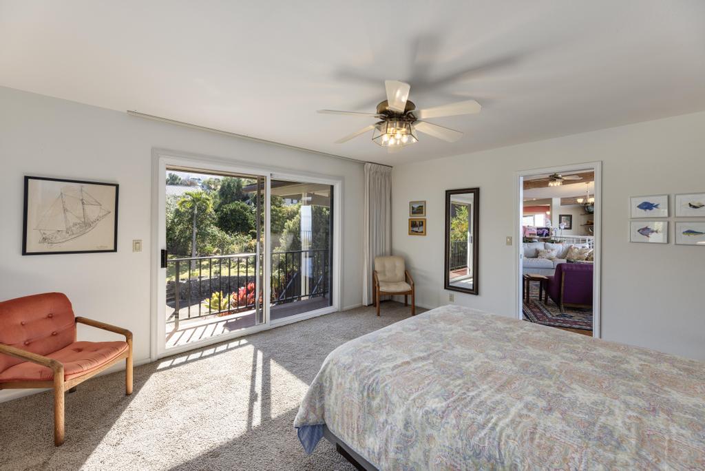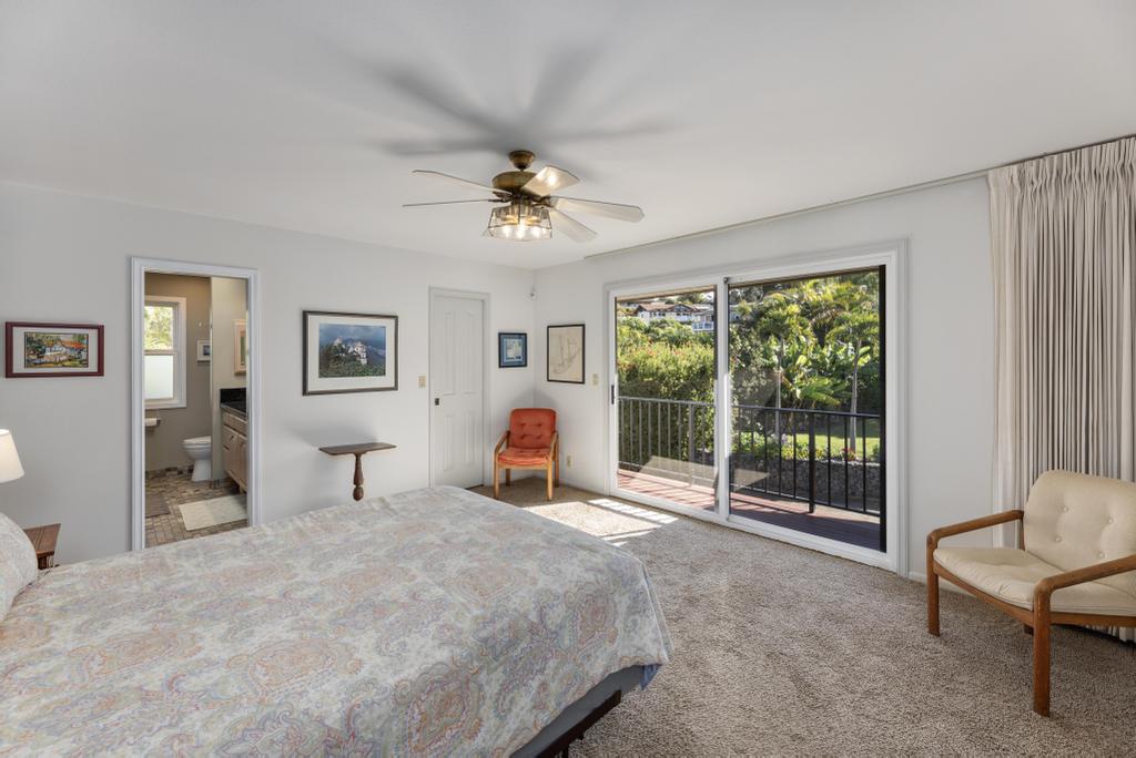 The lower level features ocean views: a substantially sized family room with fireplace; office area; supplementary laundry/full bathroom/mudroom; a 1-bedroom ohana with its own relaxing lanai.
