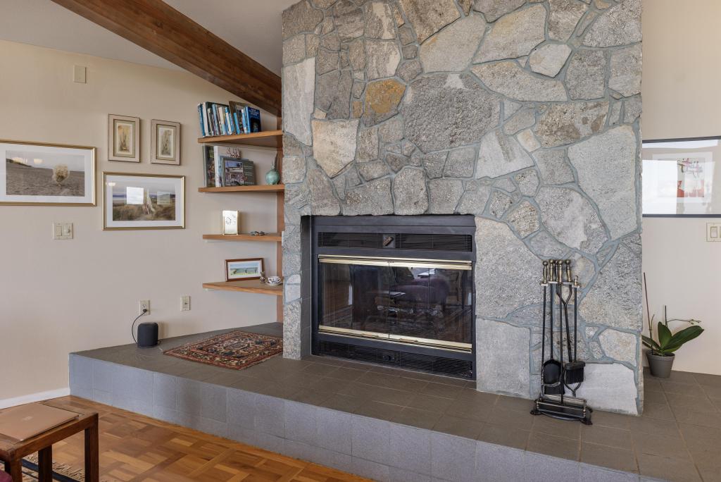 - Rock-wall fireplace