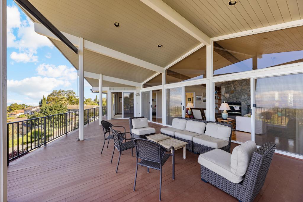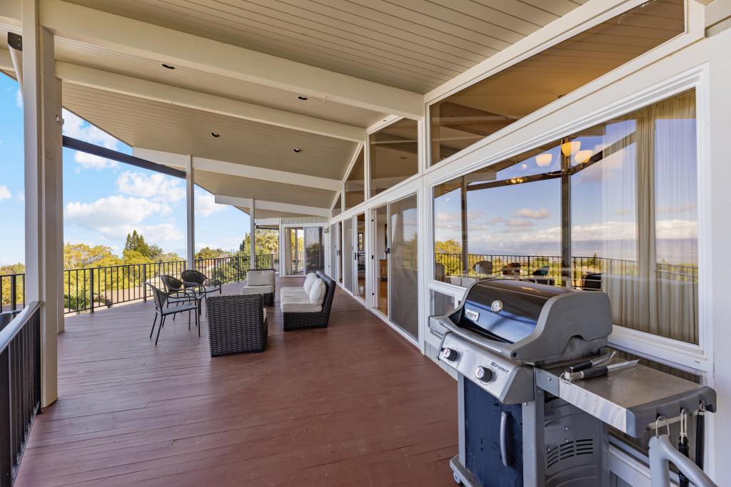 All upper level rooms expand onto an enormous covered lanai featuring electronically controlled sunshade blinds, barbecue area; lounge seating.