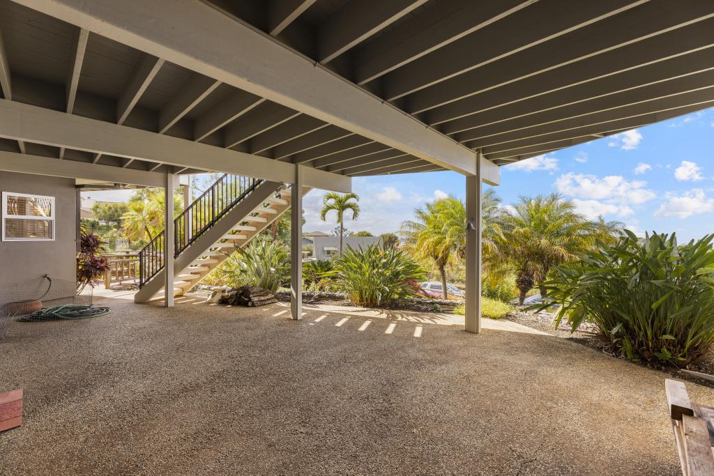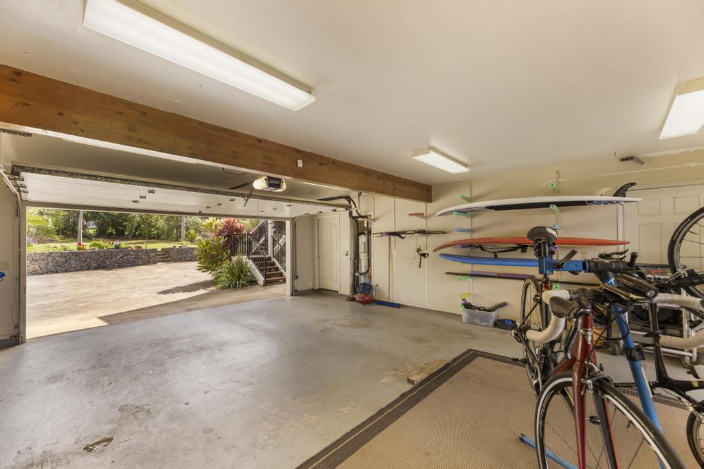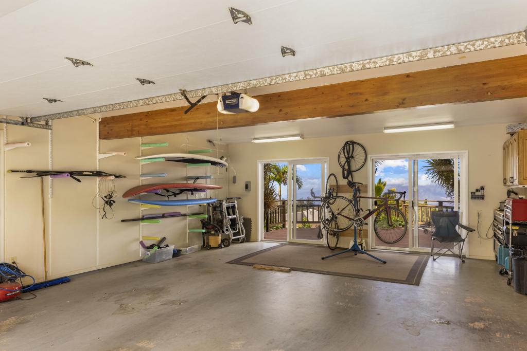 There is ample parking on the concrete driveway, multiple storage areas, an oversized 2-car garage with closeted shelving, painted floors, 2 slider glass doors opening to yet another lanai with awesome views.