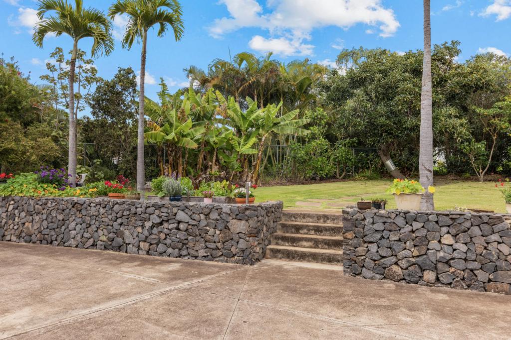 The wonderful back yard is ideal for kids & pets to play safely, featuring veggie gardens, multiple varieties of mature fruit-abundant trees, all surrounded by extensive rock walls. Perched on a slightly sloped hilltop, this turn-key, fully furnished home offers privacy & spaciousness for a larger/extended family or multiple rentals for investment opportunities.