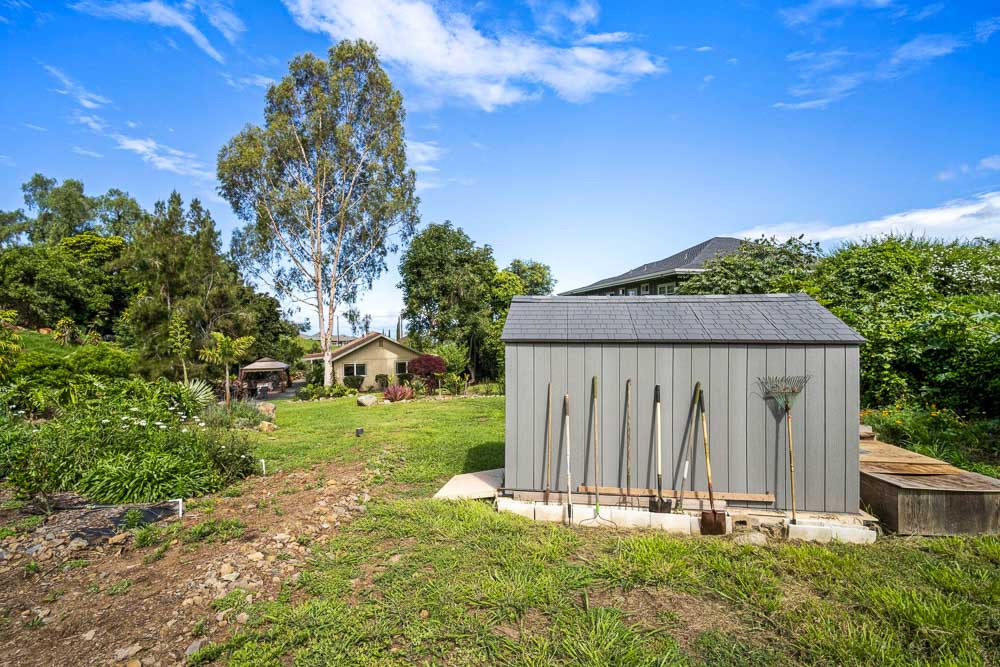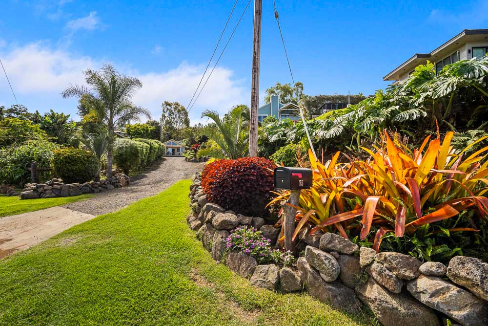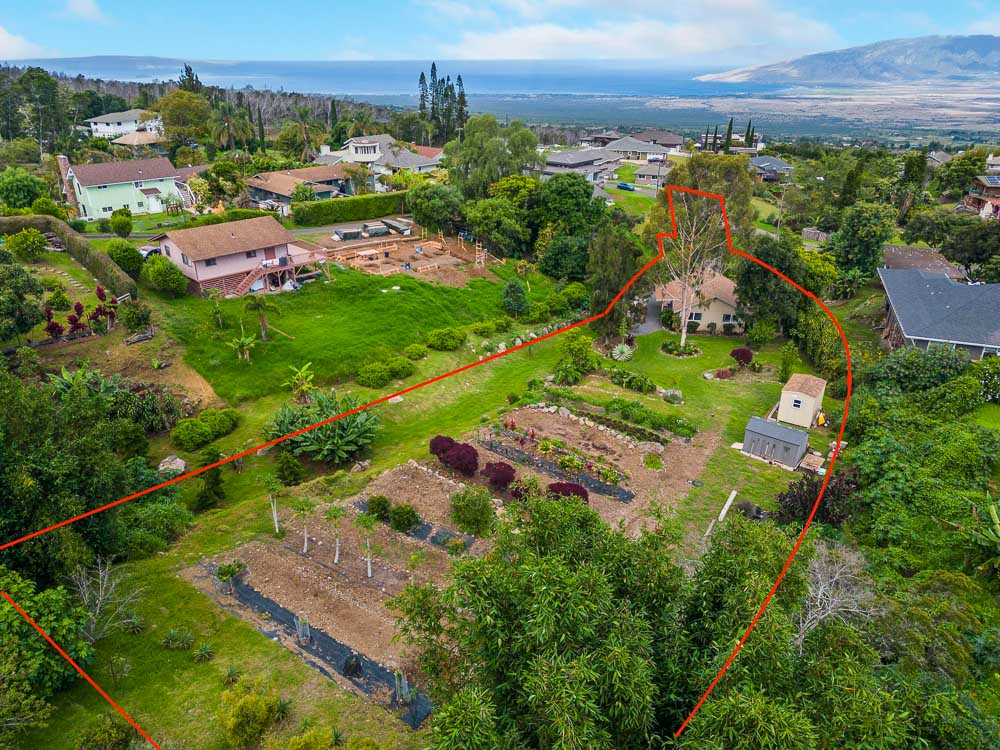 Surrounded by nearly 1 acre of prime Kula land offering modest ocean views, privacy, irrigated extensive manicured gardens perfect for growing edibles, along with many fruit producing trees, all well set back from the street. This is unit A of a 2-way condominiamized (2 acre total) property, with its own separate lengthy private driveway access, coupled with ample off-street parking.