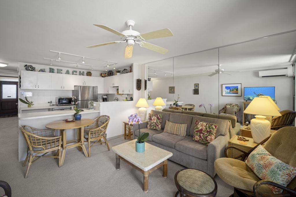 As you enter this top 3rd-floor unit (with no one above), you will be drawn to and amazed by the expansive mighty blue Pacific ocean and outer island sweeping view(s)! Enjoy balmy breezes, swaying palm trees coupled with turtle gazing and "best in the world" glorious sunsets, all while dining on your own private lanai.