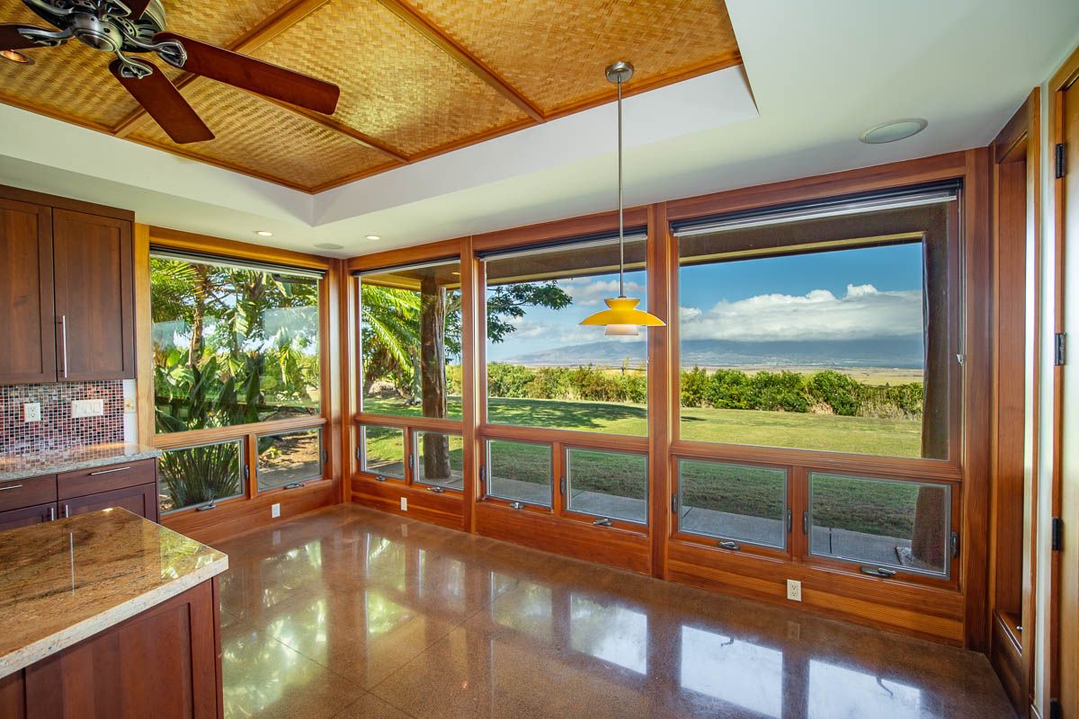Be greeted with AMAZING BI-COASTAL Ocean Views from nearly every room in this gorgeous single-story open concept home, in gated Maunaolu Plantation community at the perfect altitude, half-way between Maui’s finest boutique towns of Paia & Makawao.