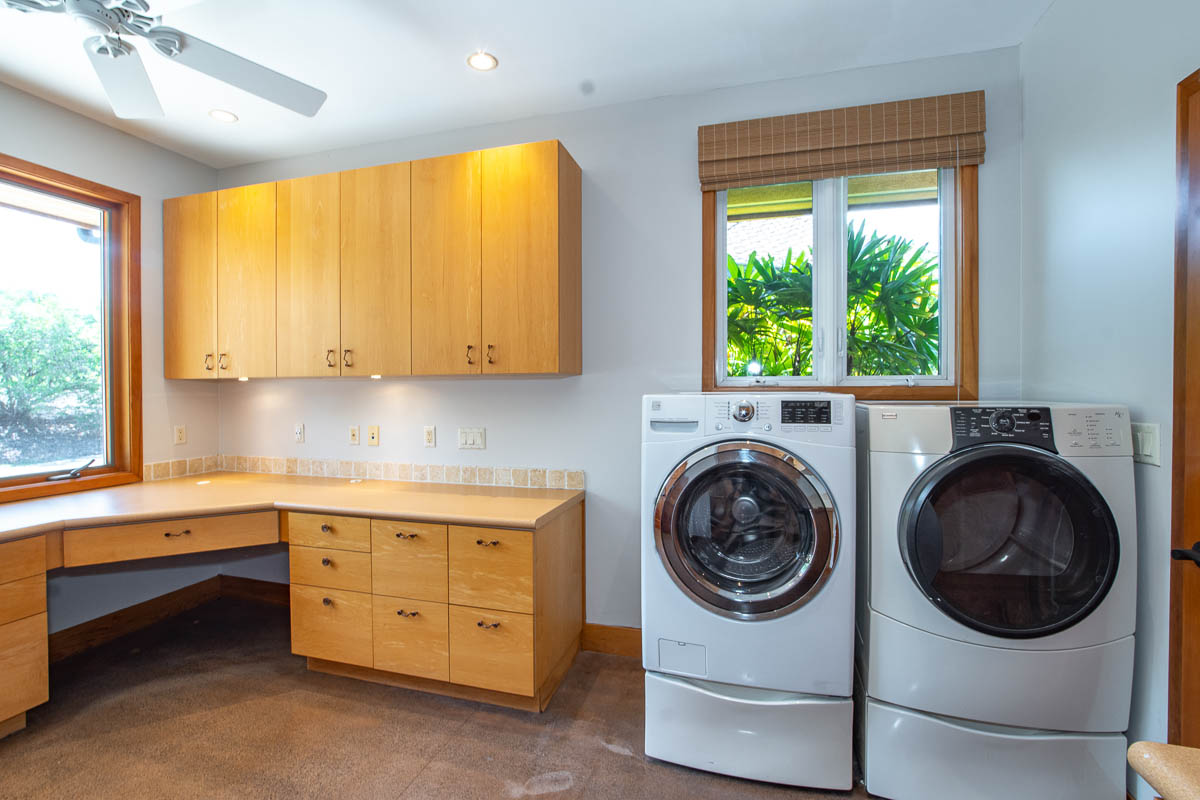 A grand porte co-chere welcomes you to a beautiful front foyer, in turn opening to the central area inclusive of an expansive living room displaying high vaulted ceilings, drop-dead views, custom doors leading to large covered lanai. A real chef’s kitchen featuring granite counters, a plethora of cabinetry, Thermador 6-burner gas range, room for a full dining table breakfast nook; a separate “real” dining room w built-in sideboards; a huge den/office & an overly spacious laundry room.