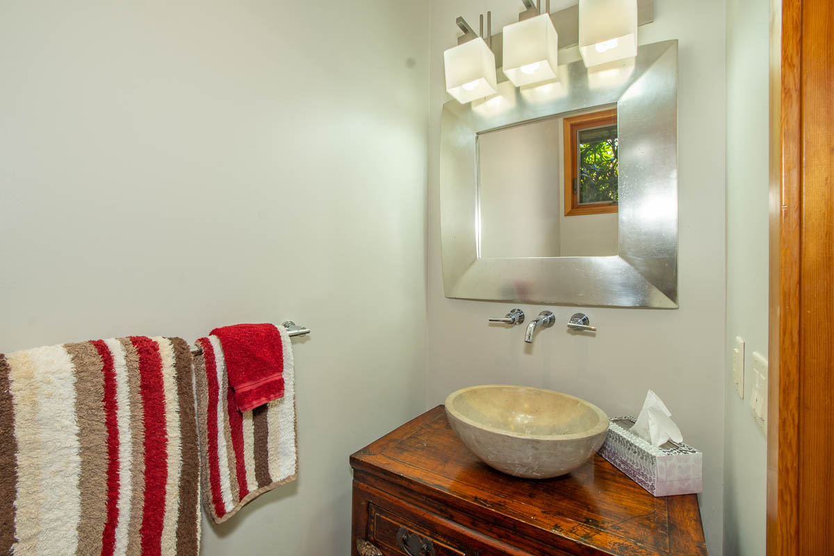 The master bedroom sports “his & hers” separate walk-in closets, a vast master bathroom w jetted tub, walk-in shower, & seclusion from the other 2 generous sized bedrooms, marbled bath, & quaint powder room. Also headlining a 22-panel “owned” PV system, outdoor shower, tall double-door oversized detached garage w sink & plenty of workshop/storage space.